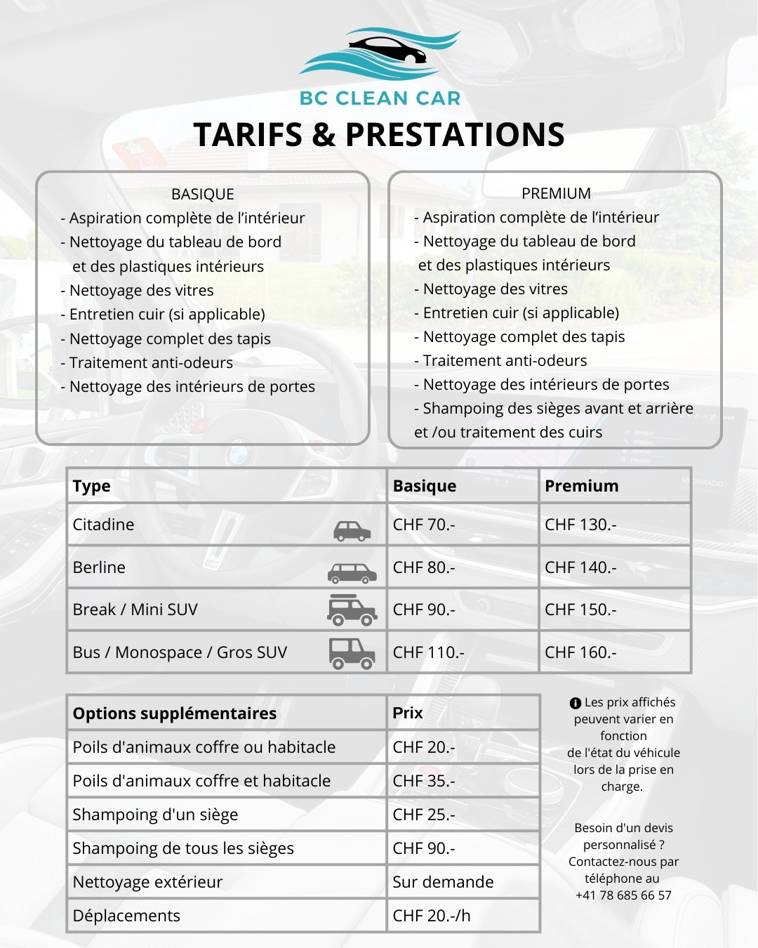 Une liste de prix de nos services vous permet de choisir facilement l'option qui convient à votre budget et à vos besoins.